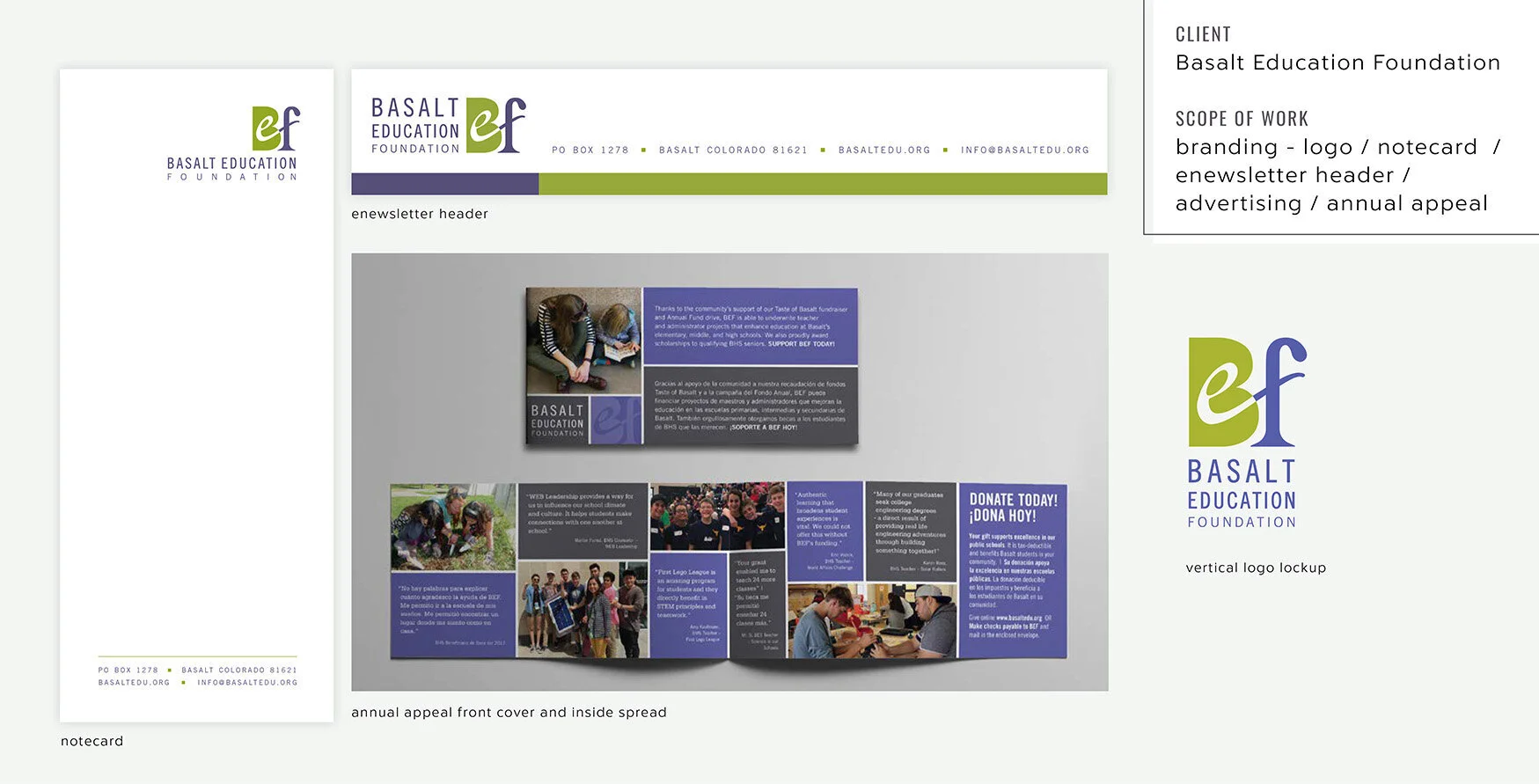 Several years ago, my former business partners and I rebranded a small, local non-profit that raises money to enhance the public schools in the community. For the most part, they’d consisted of a small group of volunteers who put on one annual event, the Taste of Basalt. We developed a completely new identity for the group and then rebranded their event.